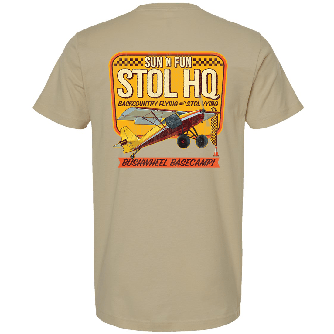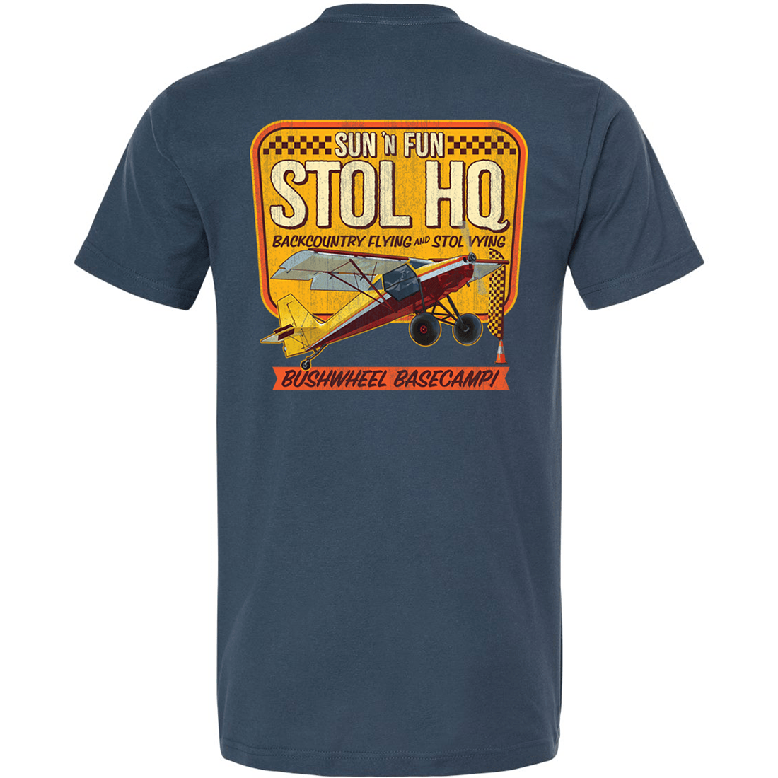 The Backcountry Basecamp SUN 'n FUN 2026 T-Shirt celebrates the adventurous spirit of backcountry flying and the excitement of STOL aviation. Featuring bold “STOL HQ” artwork on the back with a rugged bush plane ready for takeoff, this design highlights the energy and skill behind short takeoff and landing flying that has become a major attraction at the SUN 'n FUN Aerospace Expo.
